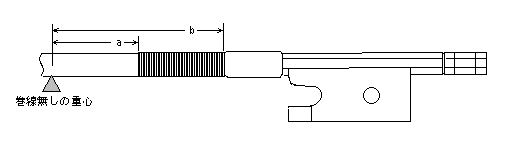 - 弓のバランスを考える上で、「重心」の理論的計算方法は避けて通ることはできません。以下に、巻線によって起こる弓の重心変化の求め方を書きます。