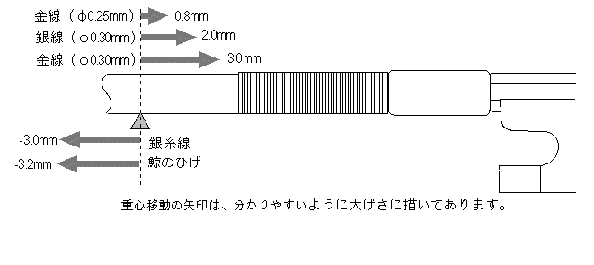 *1実際には、鯨のひげや銀糸線は、金属巻線よりも長めの区間巻く場合が多いので、重心の移動距離はここまで大きく「マイナス」になるわけではありません。